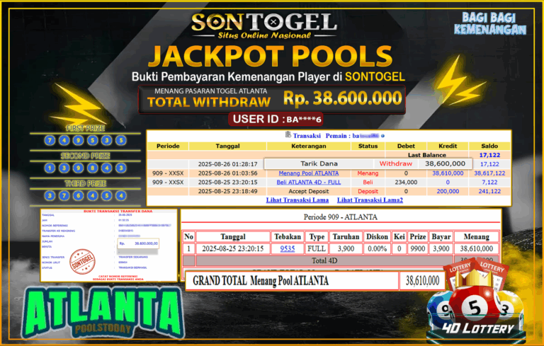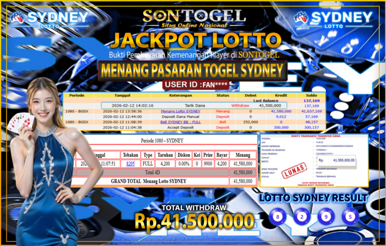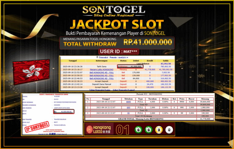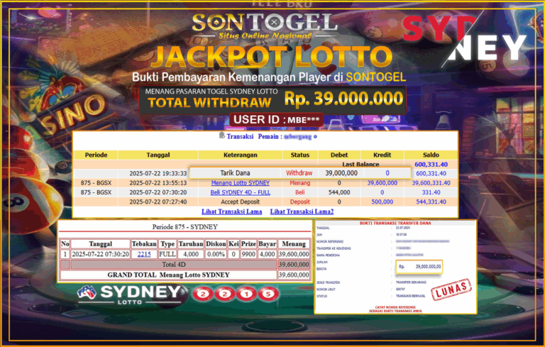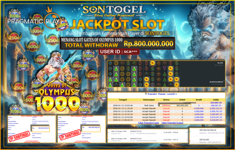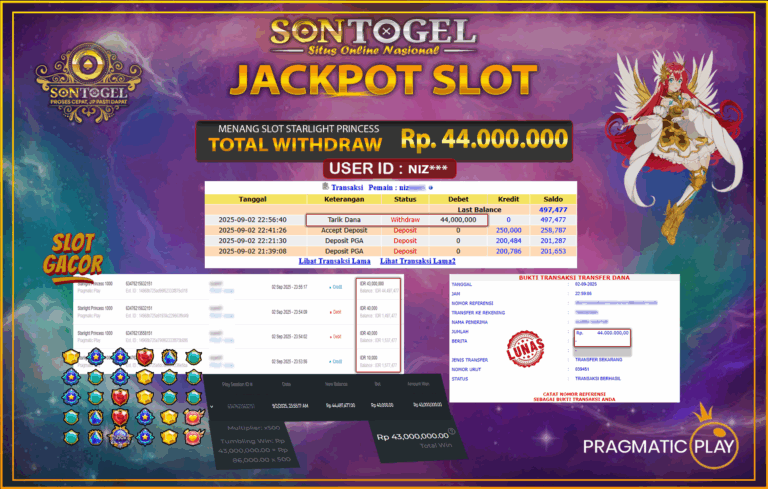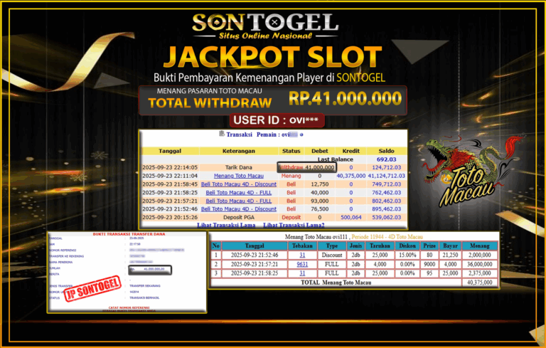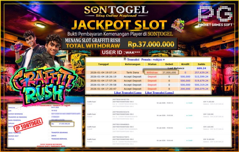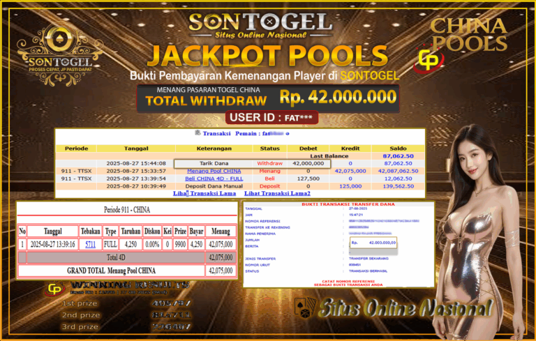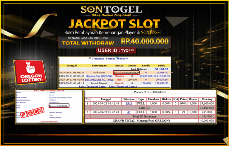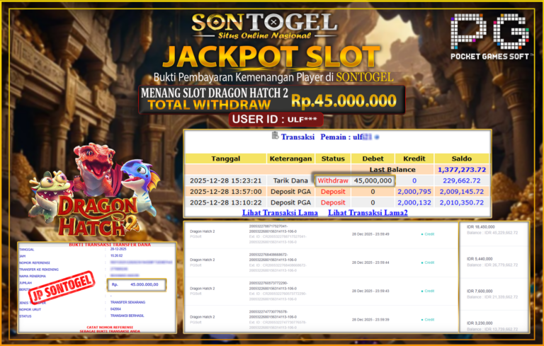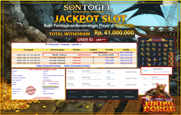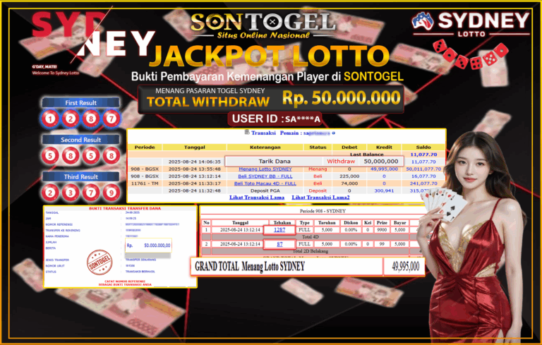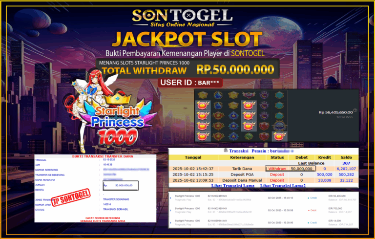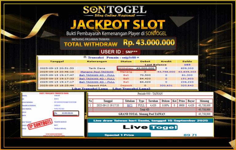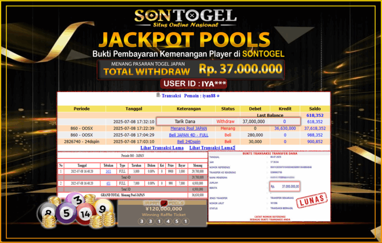 BUKTI JP SONTOGEL – Situs Togel Online, Live Casino dan Slot Online Terpercaya yang terbukti membayar berapapun kemenangan Anda tanpa kekurangan sepeserpun. Jika Anda masih mencari Situs Terpercaya, jangan ragu untuk bermain di SONTOGEL. Dalam 1 akun Anda bisa menikmati semua permainan dengan minimal deposit hanya Rp. 5.000,- saja. Berbagai pasaran togel resmi bisa Anda…