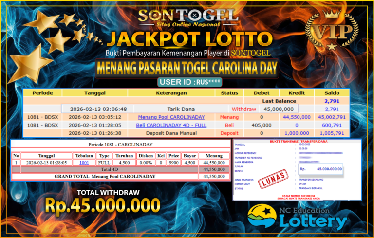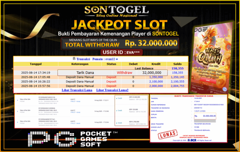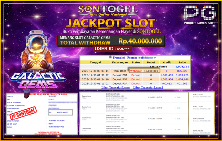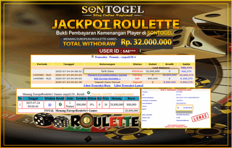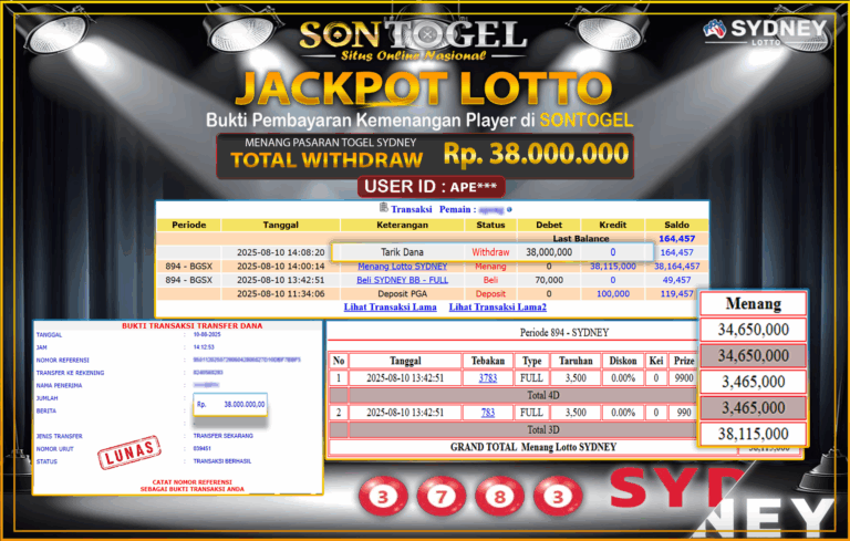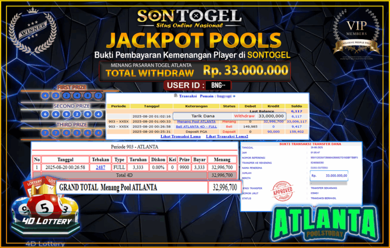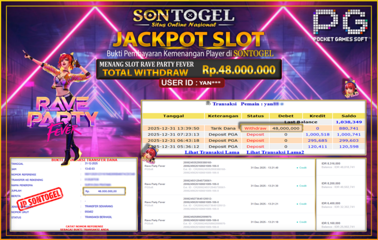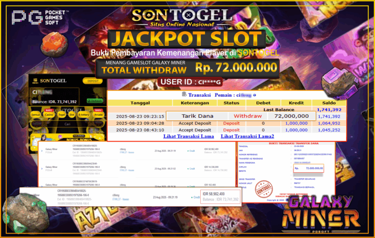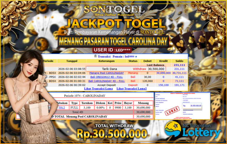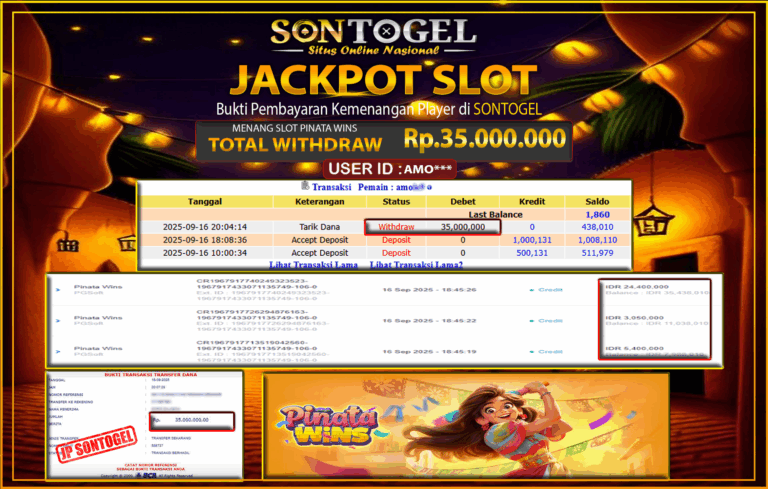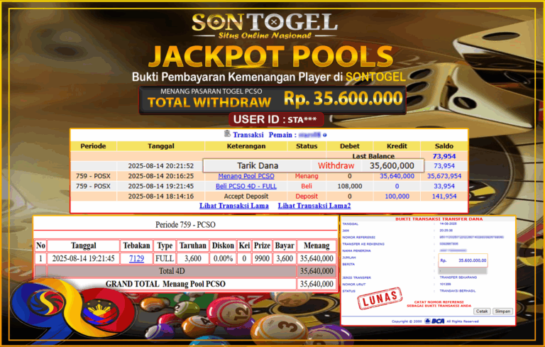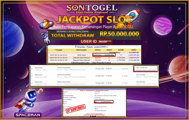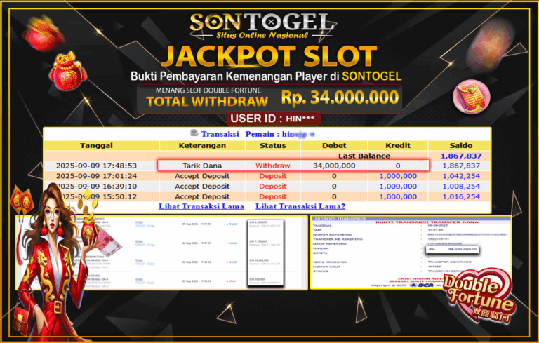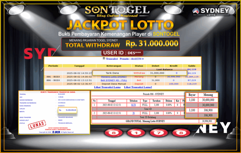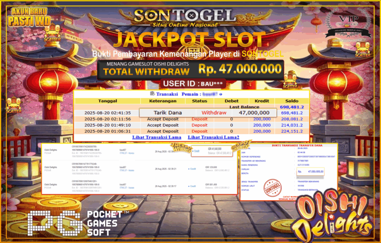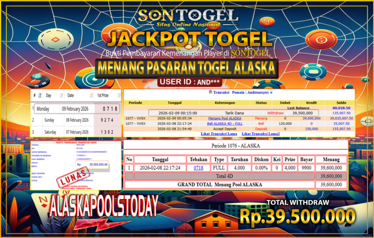 BUKTI JP SONTOGEL – Situs Togel Online, Live Casino dan Slot Online Terpercaya yang terbukti membayar berapapun kemenangan Anda tanpa kekurangan sepeserpun. Jika Anda masih mencari Situs Terpercaya, jangan ragu untuk bermain di SONTOGEL. Dalam 1 akun Anda bisa menikmati semua permainan dengan minimal deposit hanya Rp. 5.000,- saja. Berbagai pasaran togel resmi bisa Anda…