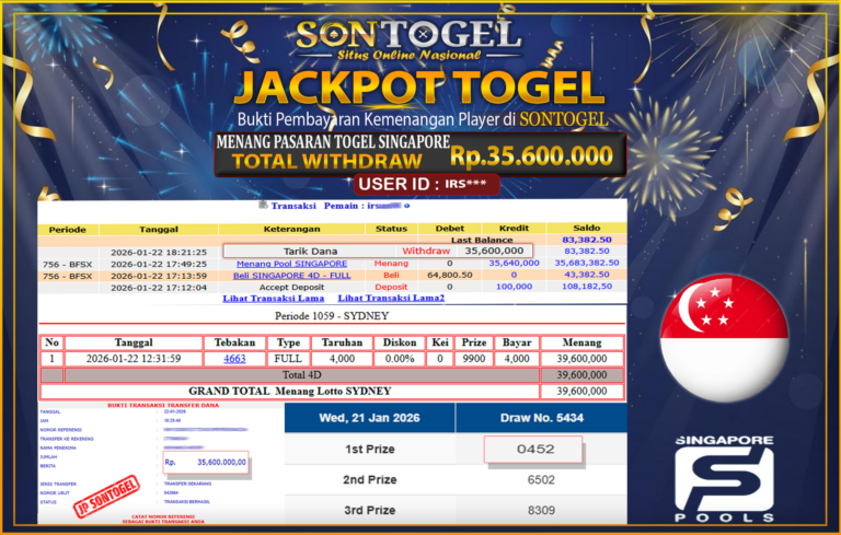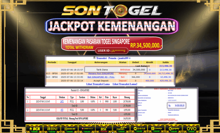 JP SONTOGEL PASARAN TOGEL SINGAPORE Rp.34.500.000