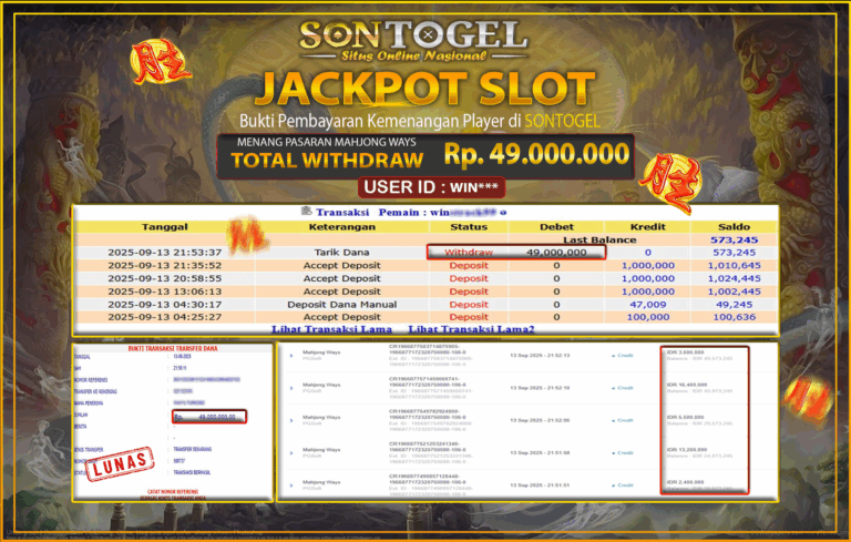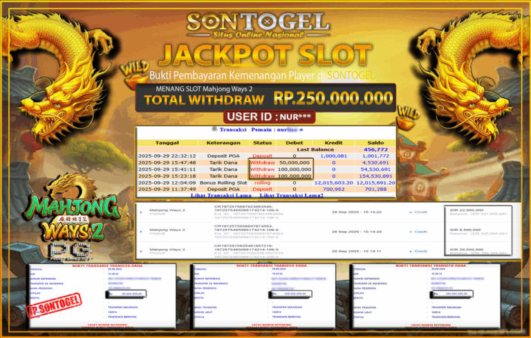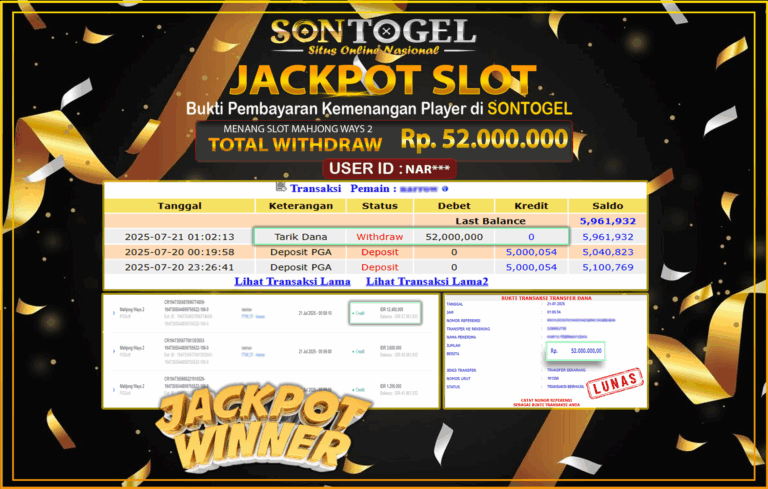 JP SONTOGEL SLOT MAHJONG WAYS Rp.44.000.000
