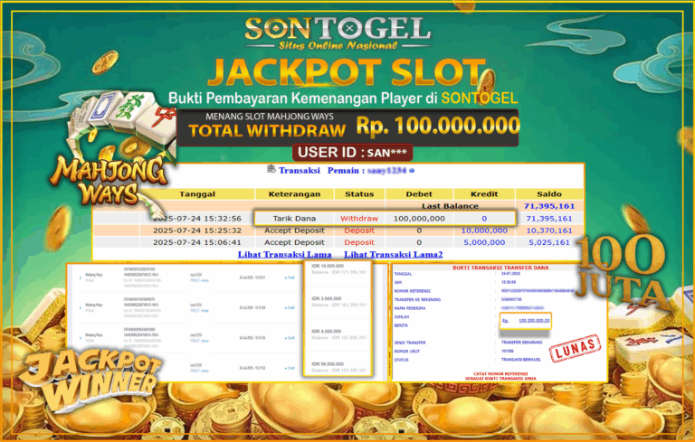 JP SONTOGEL SLOT MAHJONG WAYS Rp.100.000.000