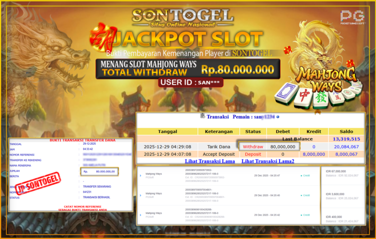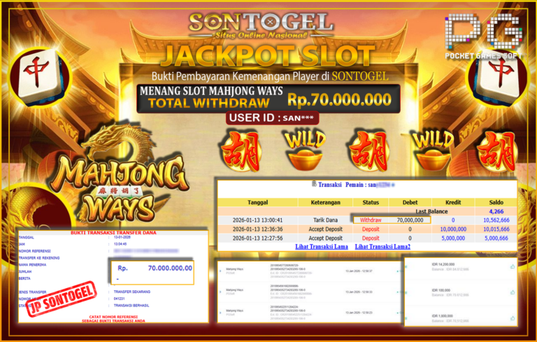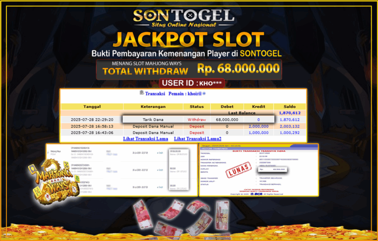 JP SONTOGEL SLOT MAHJONG WAYS Rp.68.000.000