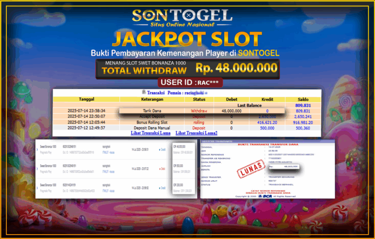 JP SONTOGEL SLOT SWEET BONANZA Rp.48.000.000