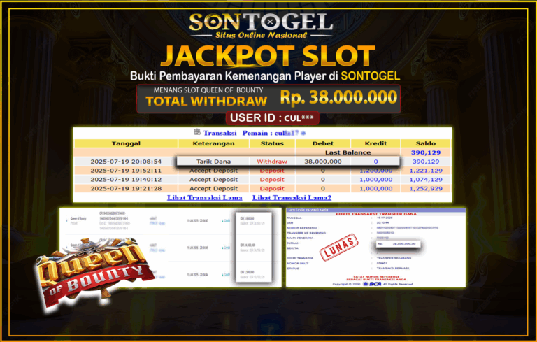 JP SONTOGEL SLOT QUEEN OF BOUNTY Rp.38.000.000