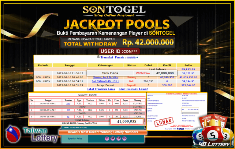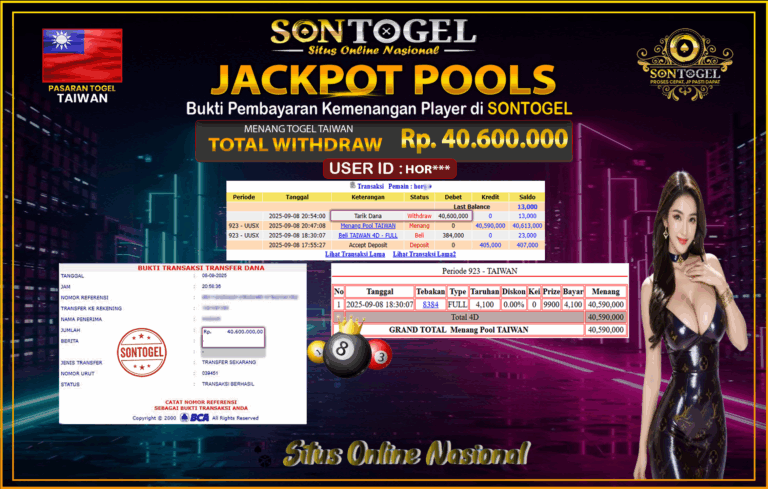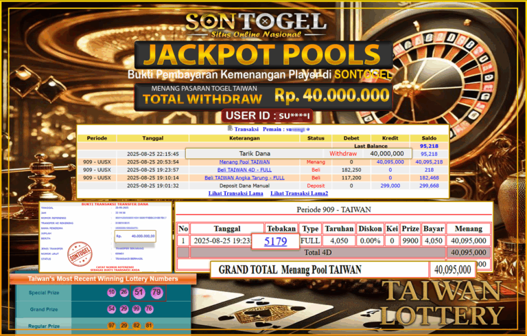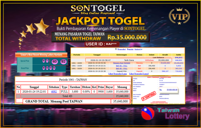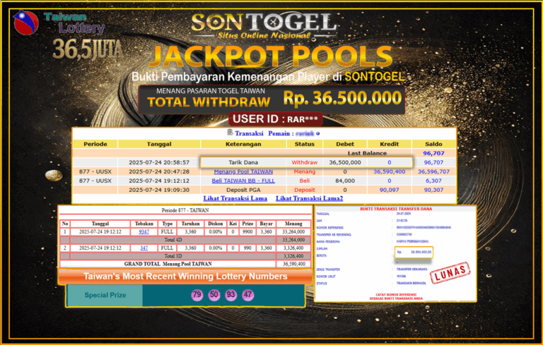 JP SONTOGEL PASARAN TOGEL TAIWAN Rp.36.500.000