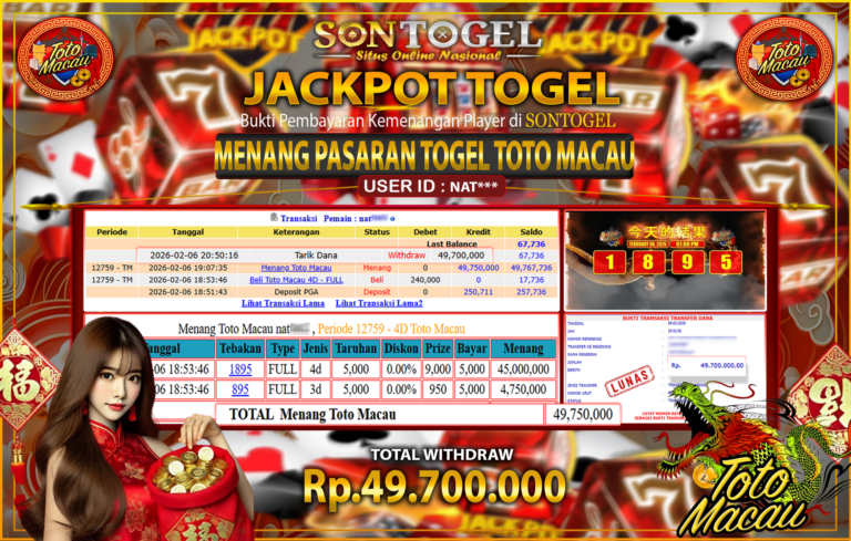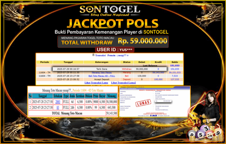 JP SONTOGEL PASARAN TOGEL TOTO MACAU Rp.59.000.000