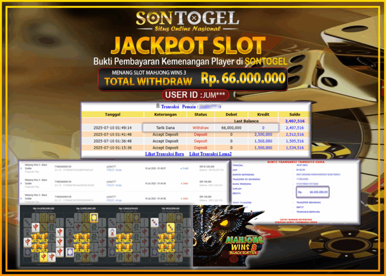 JP SONTOGEL SLOT MAHJONG WINS 3 Rp.66.000.000