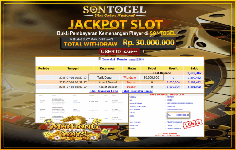 JP SONTOGEL SLOT MAHJONG WAYS Rp.30.000.000