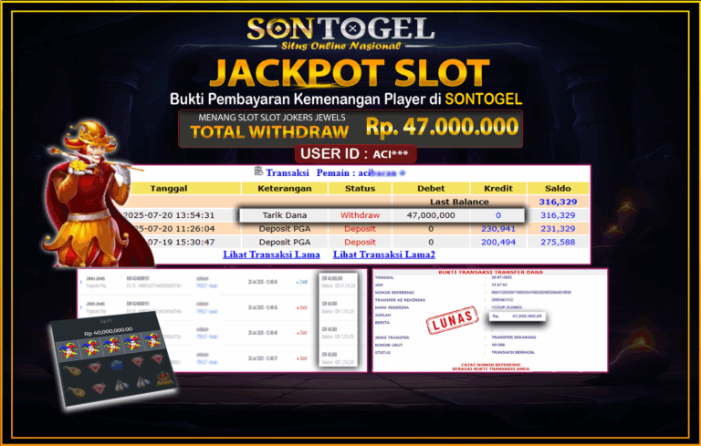 JP SONTOGEL SLOT JOKERS JEWELS Rp.47.000.000
