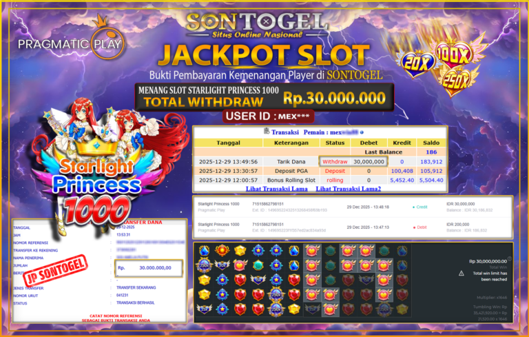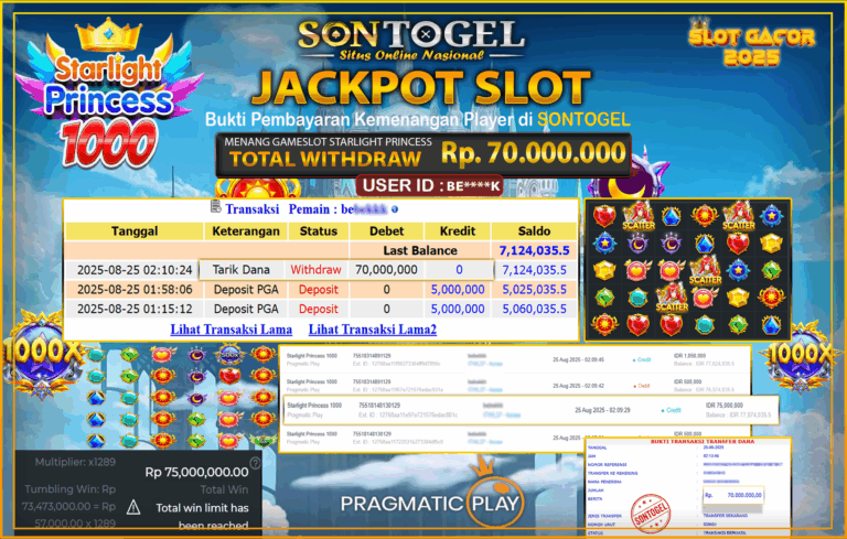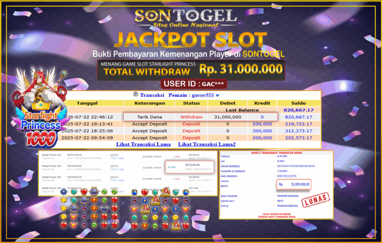 JP SONTOGEL SLOT STARLIGHT PRINCESS Rp.31.000.000
