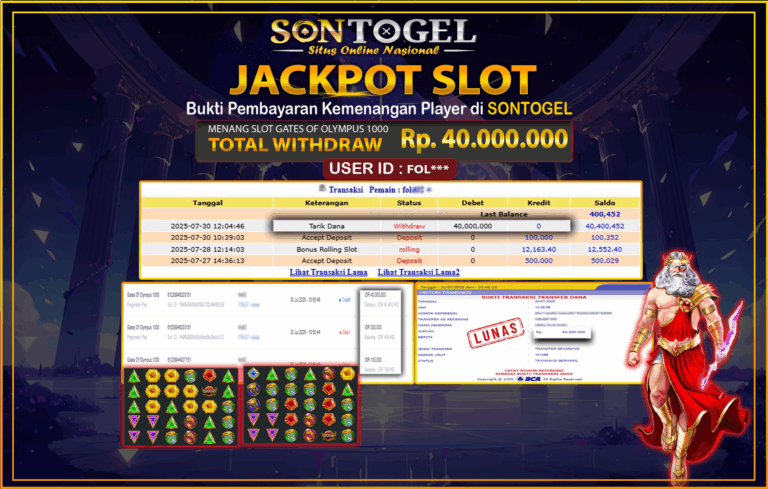 JP SONTOGEL SLOT GATES OF OLYMPUS Rp.40.000.000