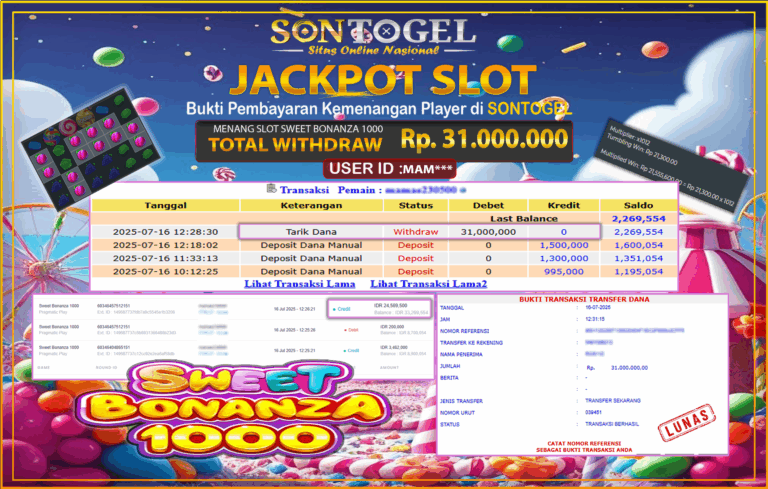 JP SONTOGEL SLOT SWEET BONANZA Rp.31.000.000