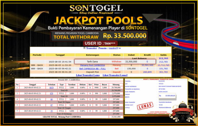 JP SONTOGEL PASARAN TOGEL CAMBODIA Rp.33.500.000