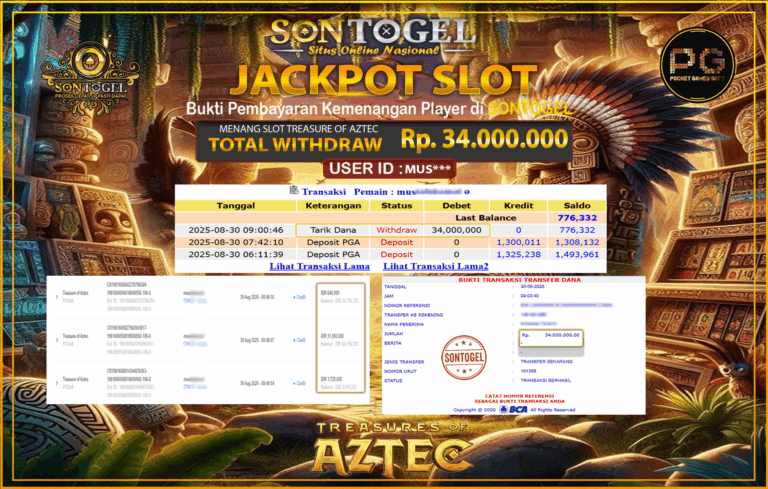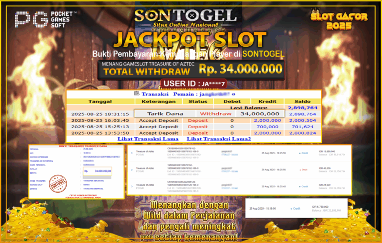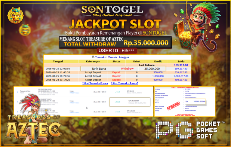 JP SONTOGEL SLOT TREASURE OF AZTEC Rp.35.000.000