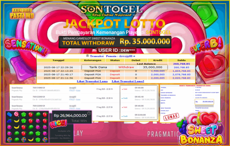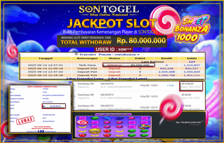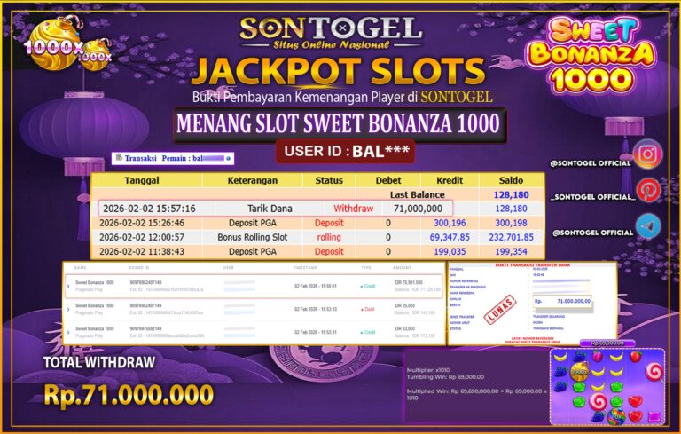 JP SONTOGEL SLOT SWEET BONANZA Rp.71.000.000
