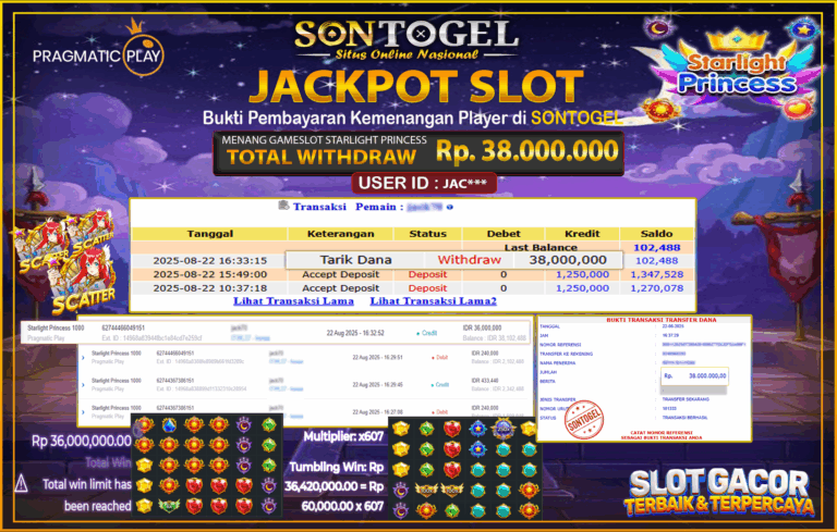JP SONTOGEL SLOT STARLIGHT PRINCESS Rp.36.000.000