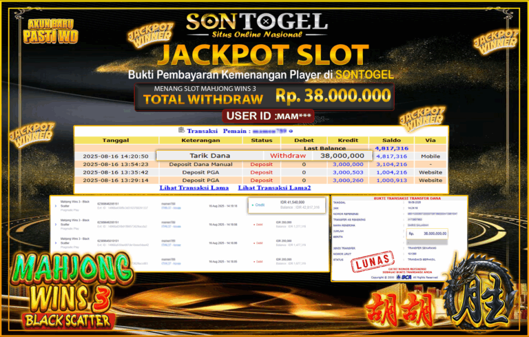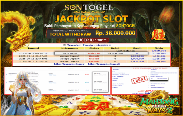 JP SONTOGEL SLOT MAHJONG WAYS Rp.38.000.000