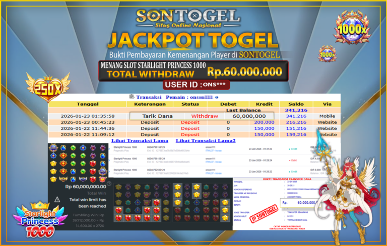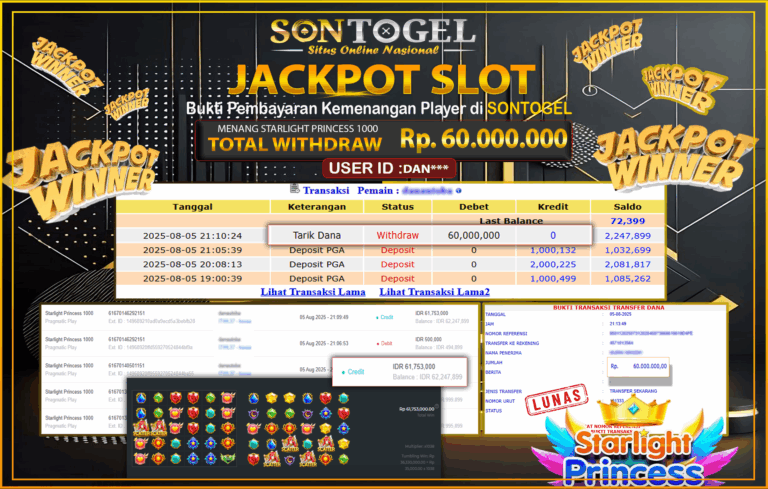 JP SONTOGEL SLOT STARLIGHT PRINCESS Rp.60.000.000