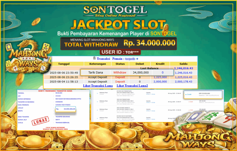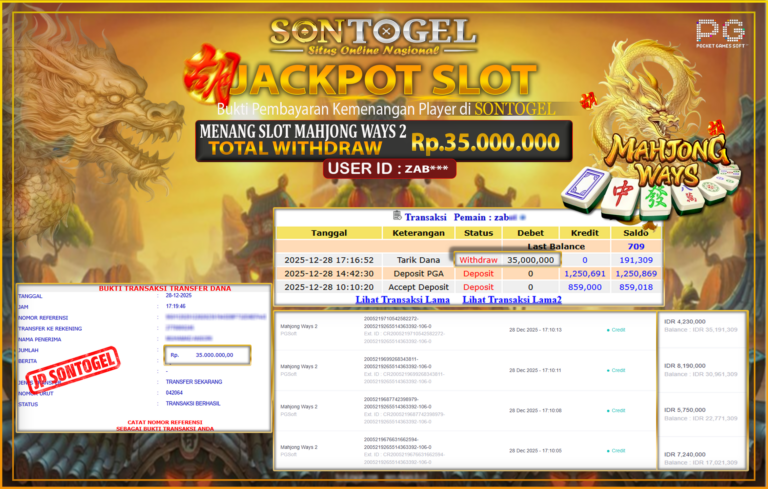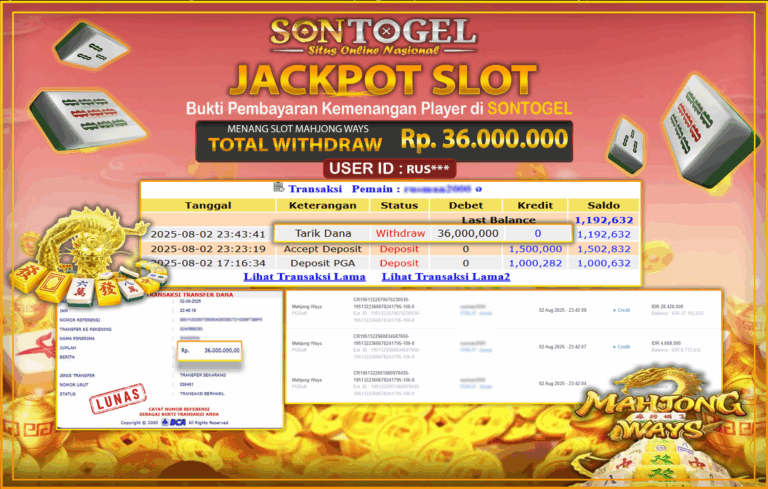 JP SONTOGEL SLOT MAHJONG WAYS Rp.36.000.000
