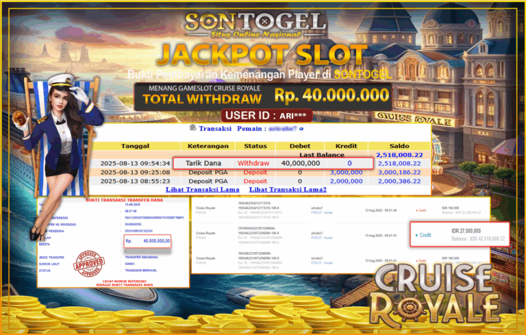 JP SONTOGEL SLOT CRUISE ROYALE Rp.41.000.000