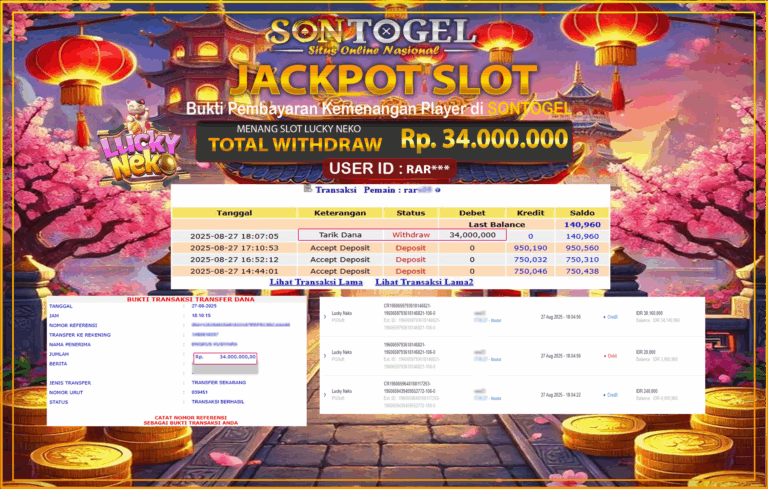 JP SONTOGEL SLOT LUCKY NEKO Rp.42.000.000