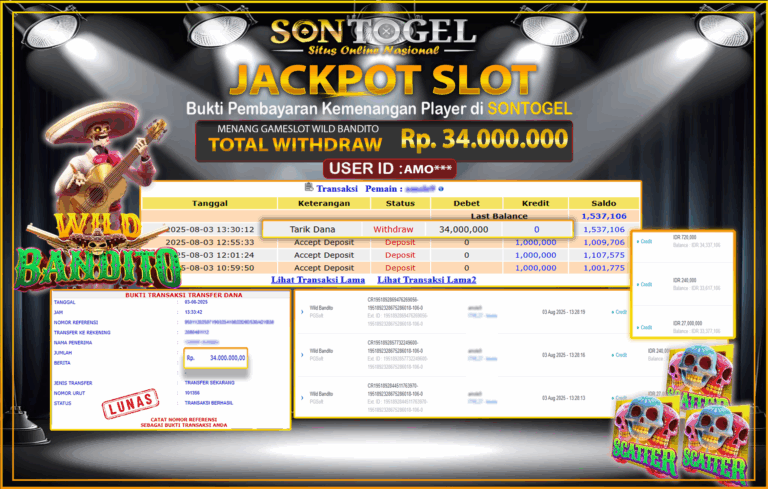 JP SONTOGEL SLOT WILD BANDITO Rp.34.000.000