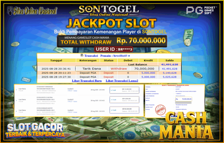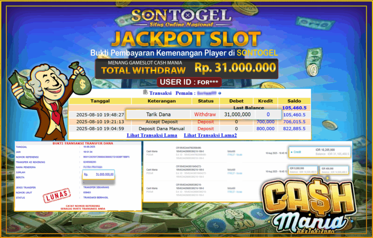 JP SONTOGEL SLOT CASH MANIA Rp.55.000.000