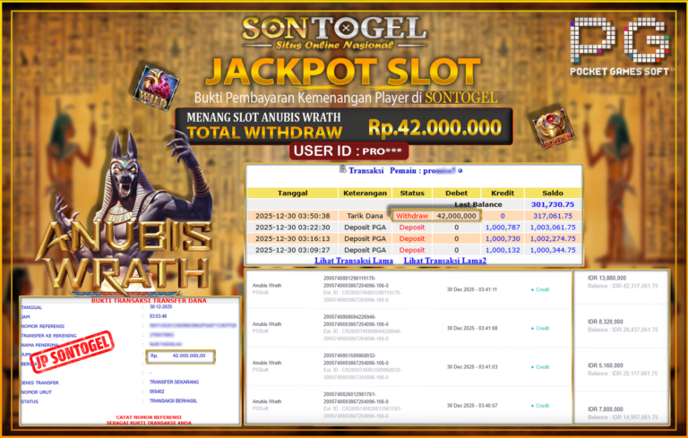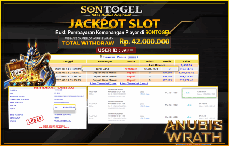JP SONTOGEL SLOT ANUBIS WRATH Rp.36.000.000
