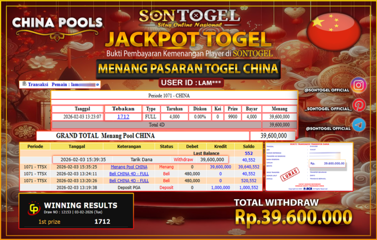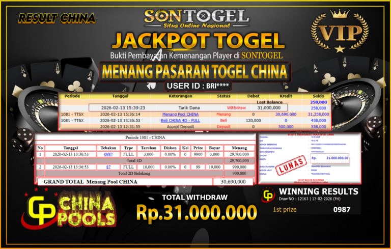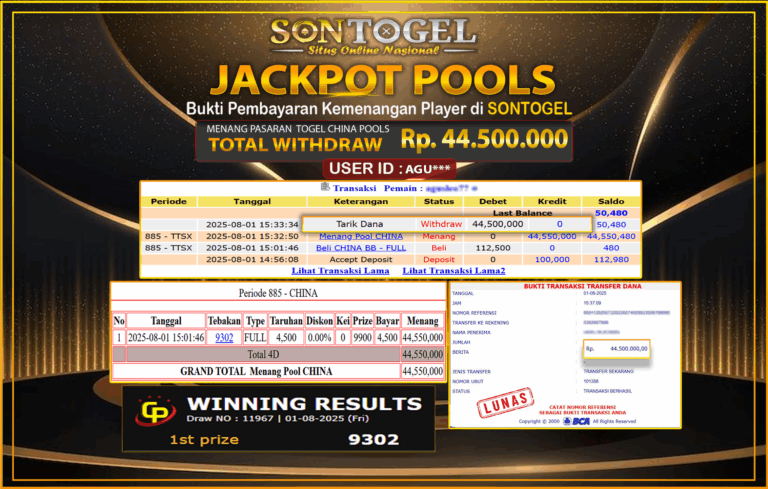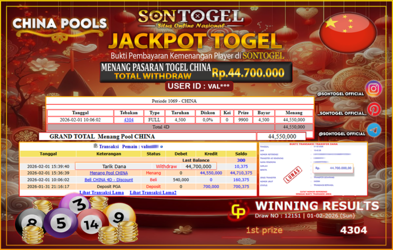 JP SONTOGEL PASARAN TOGEL CHINA Rp.44.500.000