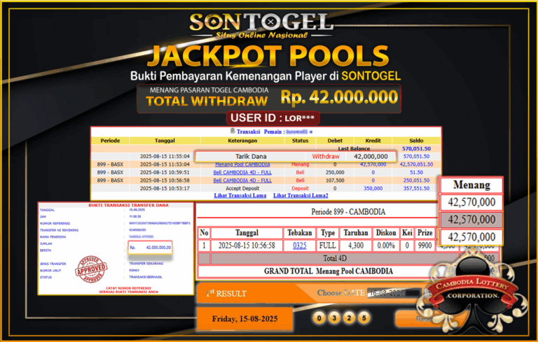 JP SONTOGEL PASARAN TOGEL CAMBODIA Rp.41.500.000