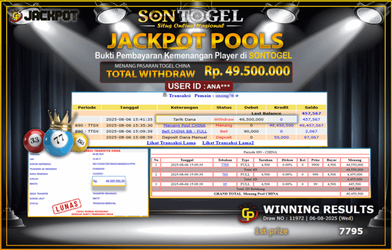 JP SONTOGEL PASARAN TOGEL CHINA Rp.49.500.000