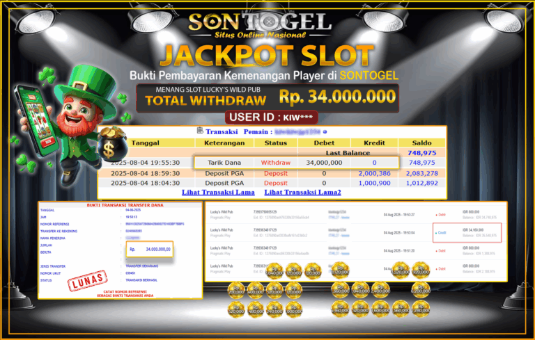 JP SONTOGEL SLOT LUCKY’S WILD PUB Rp.34.000.000
