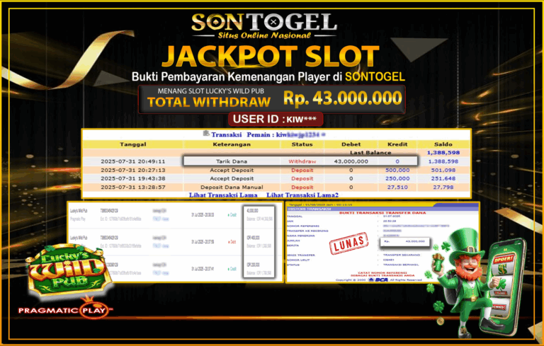 JP SONTOGEL SLOT LUCKY’S WILD PUB Rp.43.000.000
