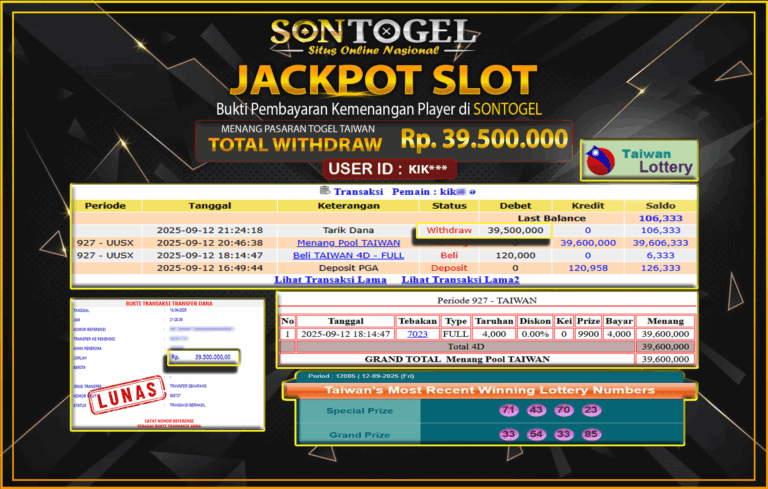 JP SONTOGEL PASARAN TOGEL TAIWAN Rp.39.000.000