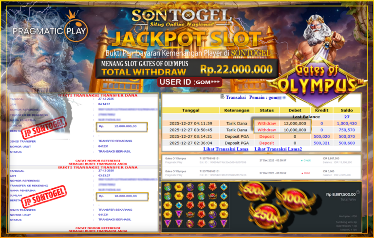 JP SONTOGEL SLOT GATES OF OLYMPUS Rp.168.500.000