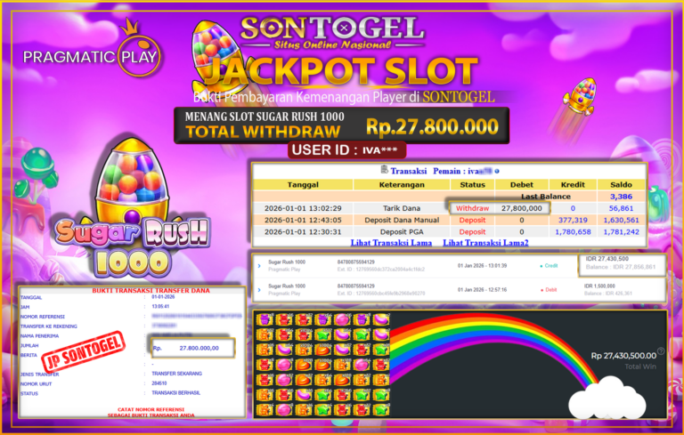JP SONTOGEL SLOT SUGAR RUSH 1000 Rp.33.000.000