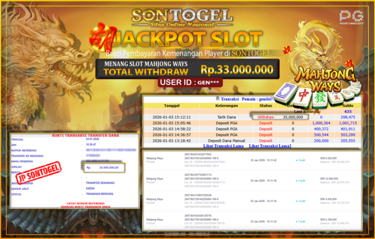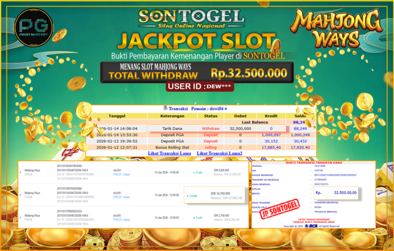 JP SONTOGEL SLOT MAHJONG WAYS Rp.33.000.000