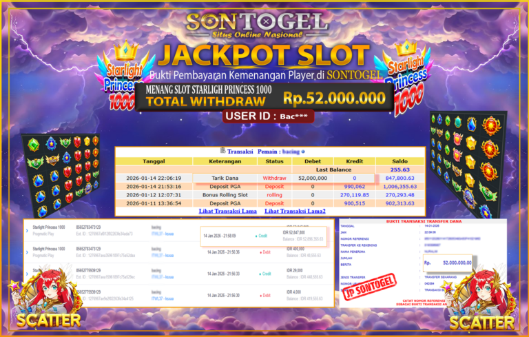 JP SONTOGEL SLOT STARLIGHT PRINCESS Rp.53.000.000