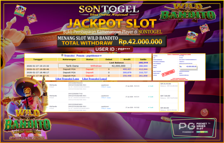 JP SONTOGEL SLOT WILD BANDITO Rp.42.000.000