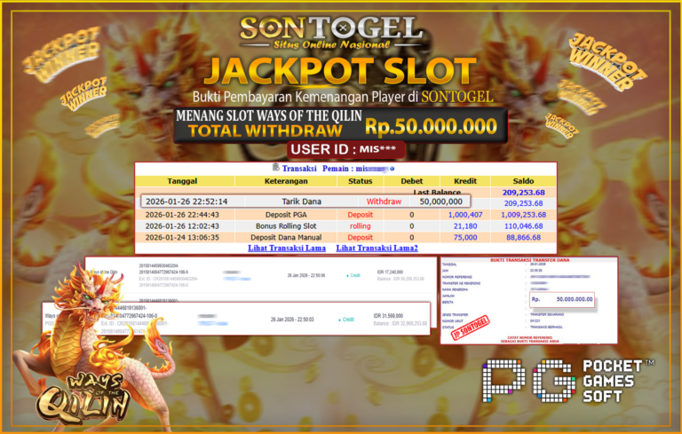JP SONTOGEL SLOT WAYS OF THE QILIN Rp.50.000.000