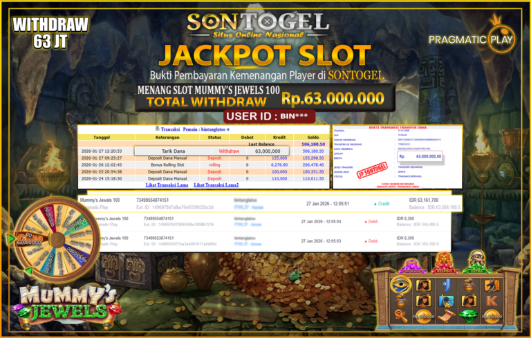 JP SONTOGEL SLOT MUMMY’S JEWELS 100 Rp.63.000.000