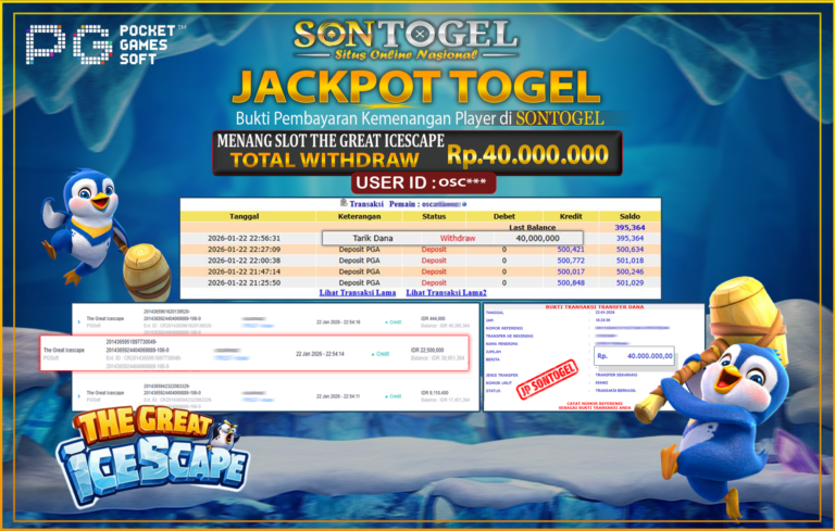 JP SONTOGEL SLOT THE GREAT ICESCAPE Rp.40.000.000