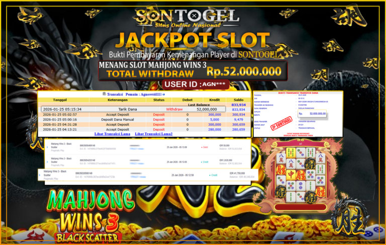 JP SONTOGEL SLOT MAHJONG WINS 3 Rp.52.000.000