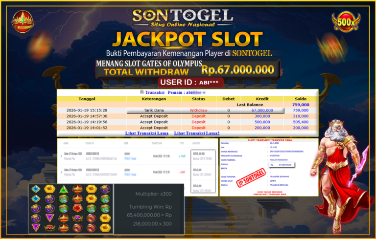 JP SONTOGEL SLOT GATES OF OLYMPUS Rp.167.000.000