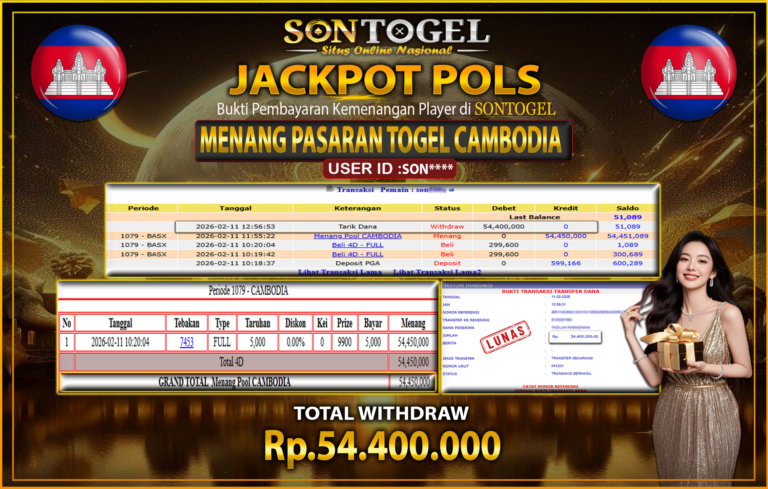 JP SONTOGEL PASARAN TOGEL CAMBODIA Rp.58.400.000