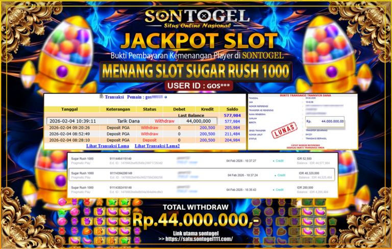 JP SONTOGEL SLOT SUGAR RUSH 1000 Rp.44.000.000