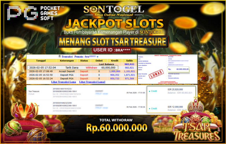 JP SONTOGEL SLOT TSAR TREASURE Rp.60.000.000