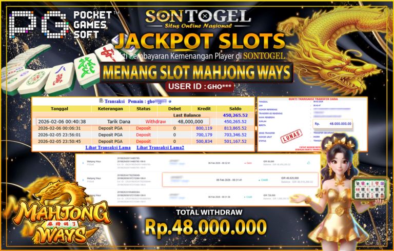 JP SONTOGEL SLOT MAHJONG WAYS Rp.48.000.000