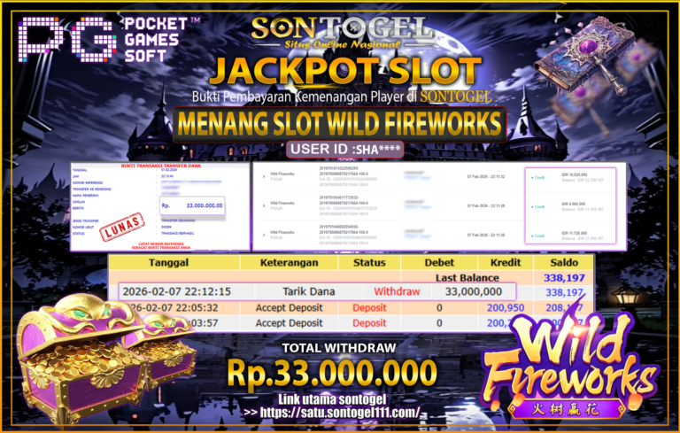 JP SONTOGEL SLOT WILD FIREWORKS Rp.33.000.000