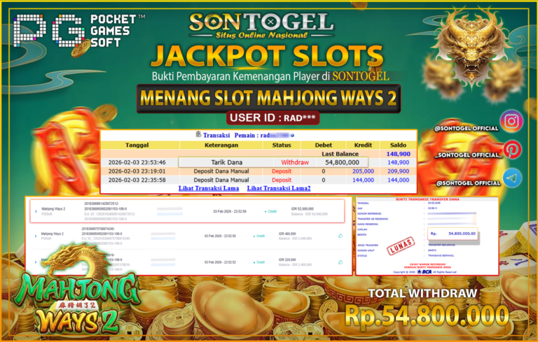 JP SONTOGEL SLOT MAHJONG WAYS Rp.53.500.000